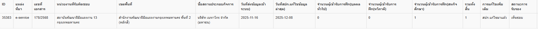 | 5344 | ระบบ New PRB e-Service | อินทัช | กรุงเทพมหานคร | ฝึกเตรียมเข้าทำงาน ID 35383 เลขที่เอกสาร 178/2568