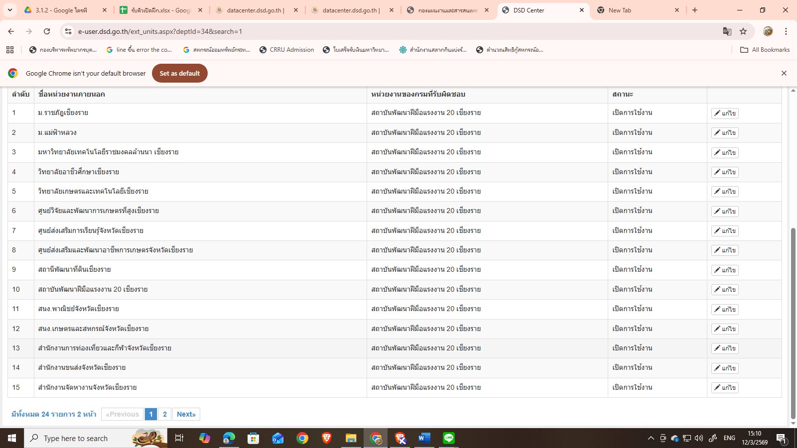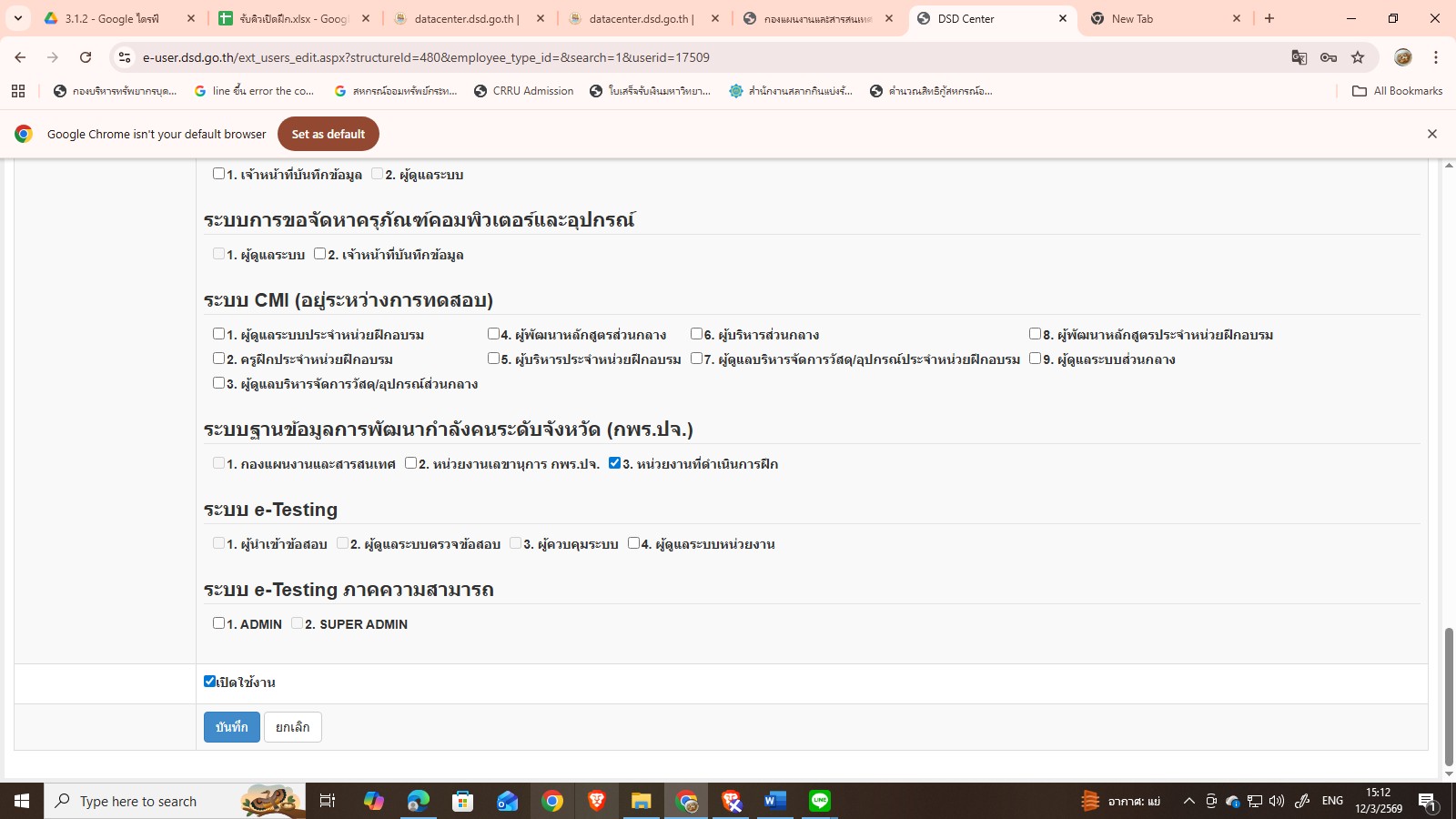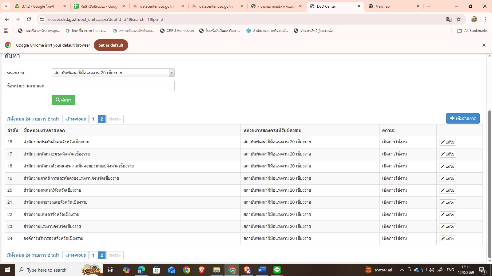 ![]() | แจ้งปัญหาการให้สิทธิ์หน่วยงานภายนอก บันทึกข้อมูลในระบบฐานข้อมูลการพัฒนากำลังคน กพร.ปจ. ไม่ขึ้น แต่ admin หน่วยงาน เปิดการใช้สิทธิไปแล้ว ได้แก่ สำนักงานแรงงานจังหวัดเชียงราย จัดหางานจังหวัดเชียงราย สวัสดิการและคุ้มครองแรงานจังหวัดเชียงราย ประกันสังคมจังหวัดเชียงราย สถาบันพัฒนาฝีมือแรงงาน 20 เชียงราย ดังภาพ รบกวนแก้ไขให้ด้วย ขอบคุณค่ะ ![]() ![]() ![]() ![]() ![]() | ![]() | ||||||