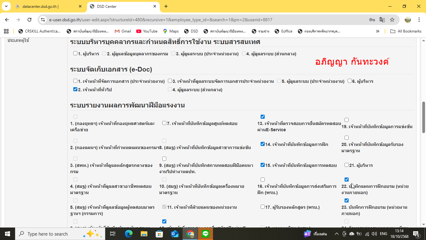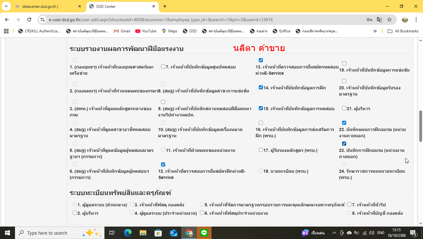 เนื่องจากการให้สิทธิ์ของ นางสาวอภิญญา กันทะวงค์ ตำแหน่งนักวิชาการพัฒนาฝีมือแรงงานปฏิบัติการ กลุมงานแผนงานและสารสนเทศ กับ นางสาวนลิตา ค้าขาย ตำแหน่งนักวิชาการพัฒนาฝีมือแรงงานปฏิบีติการ กลุ่มงานแผนงานและสารสนเทศ ให้สิทธิในการจัดการเหมือนกันในหัวข้อเรื่อง ระบบรายงานผลการพัฒนาฝีมือแรงงาน แต่นลิตา ไม่สามารถ จัดการในเรื่องของแผนการฝึก ปุม + เพิ่มสาขาไม่มีเหมือน อภิญญา ดังภาพที่แนบ รบกวนแก้ไขให้ด้วย ขอบคุณค่ะ