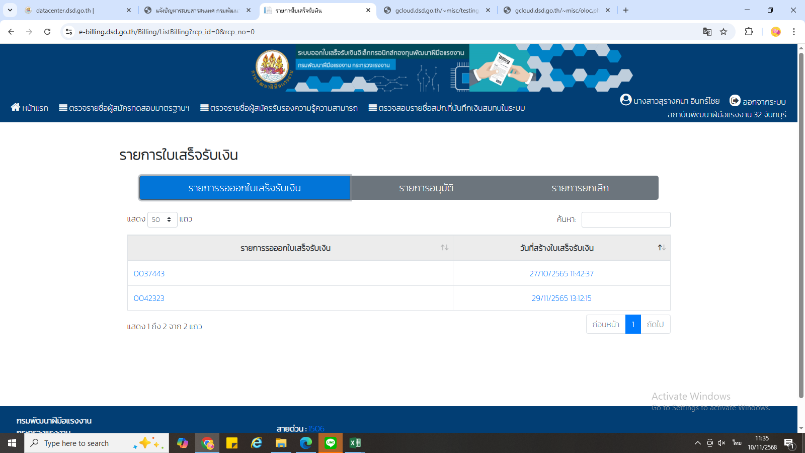 | 5240 | ระบบส่งเสริมการพัฒนาฝีมือแรงงาน | สุรางคนา อินทร์ไชย | จันทบุรี | รบกวนลบรายการใบเสร็จรับเงินจำนวน 2 รายการ ออกจากระบบ เนื่องจากมีการบันทึกข้อมูลไว้แล้วไม่มีการออกใบเสร็จในปี 65